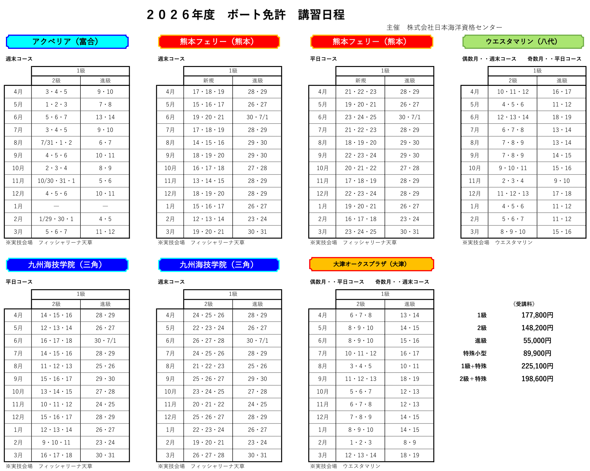 ボート 2026年度 新規取得講習日程 2026.03.10 2026年度 新規取得講習日程 2026年度 ボート免許 新規取得講習日程 PDF 2026年度 水上オートバイ免許 講習日程 2026年度 水上オートバイ免許 講習日程 PDF ボート免許 ご予約・お問合せフォーム 2026年度 更新・失効 講習日程